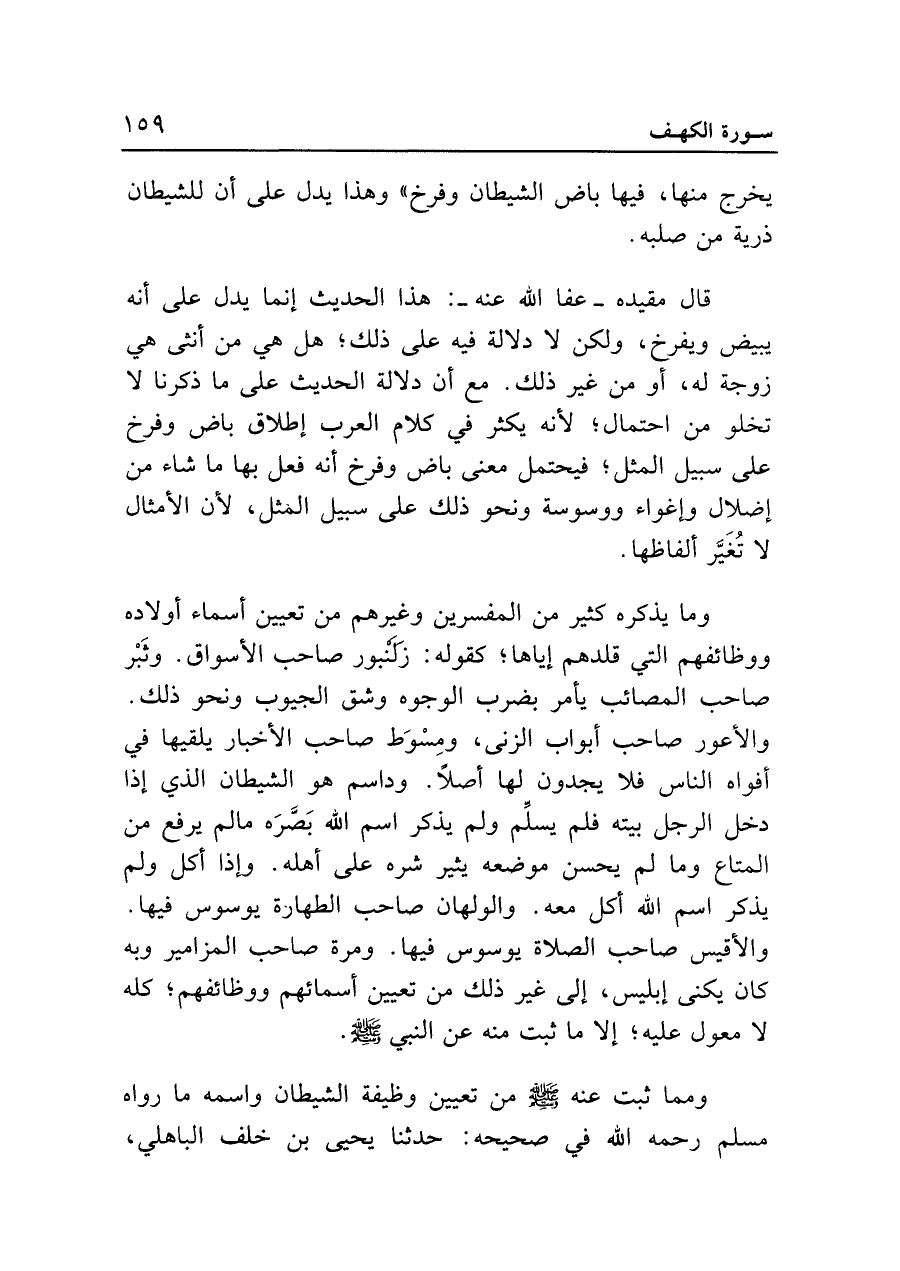 ومما ثبت عنه - صلى الله عليه وسلم - من تعيين وظيفة الشيطان واسمه ما رواه مسلم رحمه الله في صحيحه: حدثنا يحيى بن خلف الباهلي،