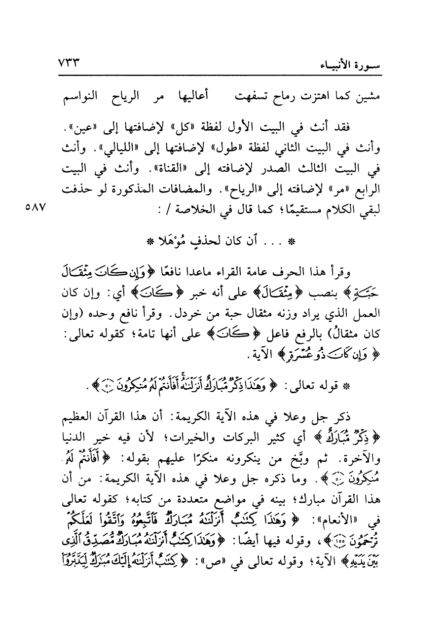 • قوله تعالى: {وَهَذَا ذِكْرٌ مُبَارَكٌ أَنْزَلْنَاهُ أَفَأَنْتُمْ لَهُ مُنْكِرُونَ (٥٠)}.
