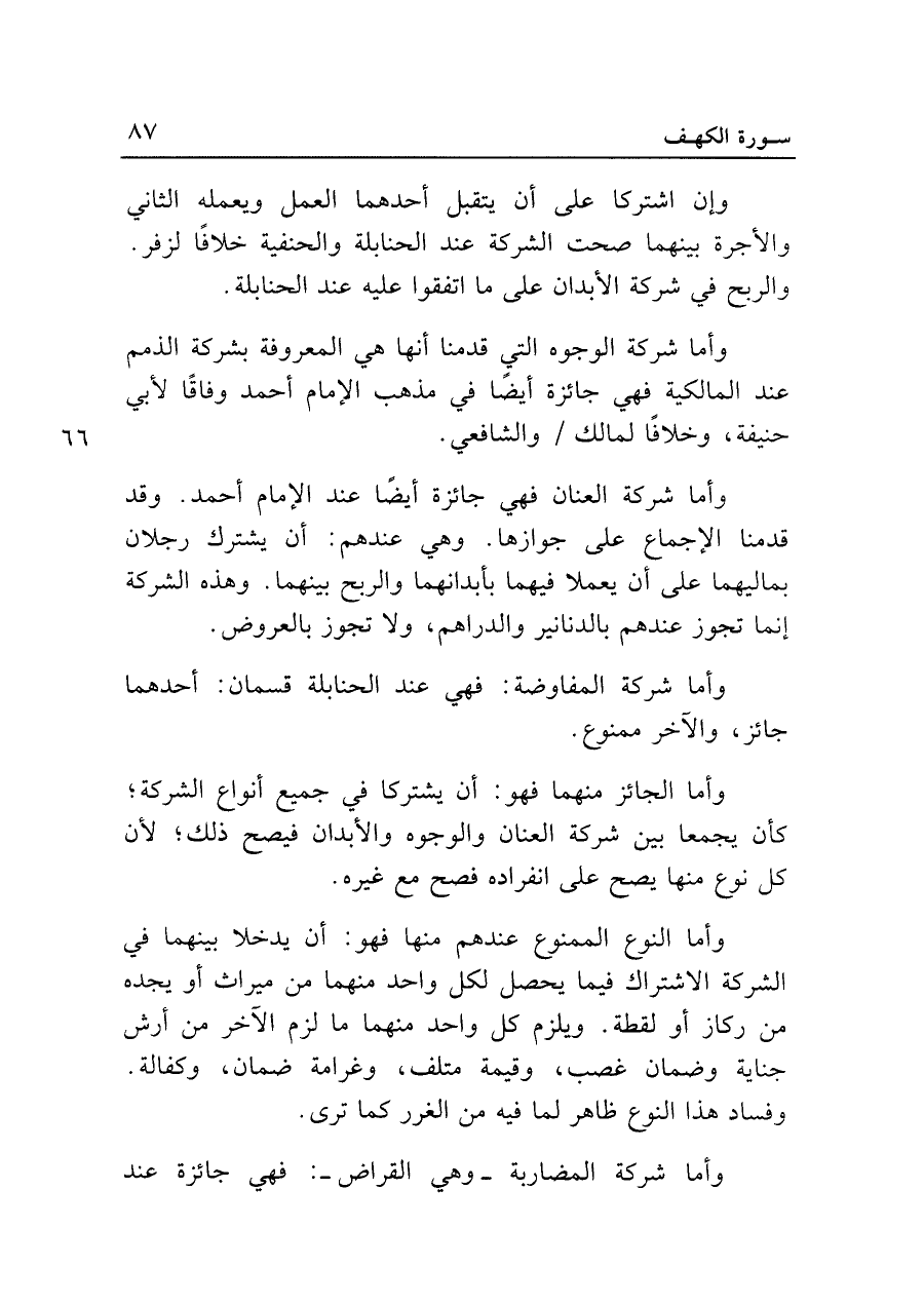 وأمَّا النوع الممنوع عندهم منها فهو: أن يدخلا بينهما في الشركة الاشتراك فيما يحصل لكل واحد منهما من ميراث أو يجده من ركاز أو لقطة. ويلزم كل واحد منهما ما لزم الآخر من أرش جناية وضمان غصب، وقيمة متلف، وغرامة ضمان، وكفالة. وفساد هذا النوع ظاهر لما فيه من الغرر كما ترى.