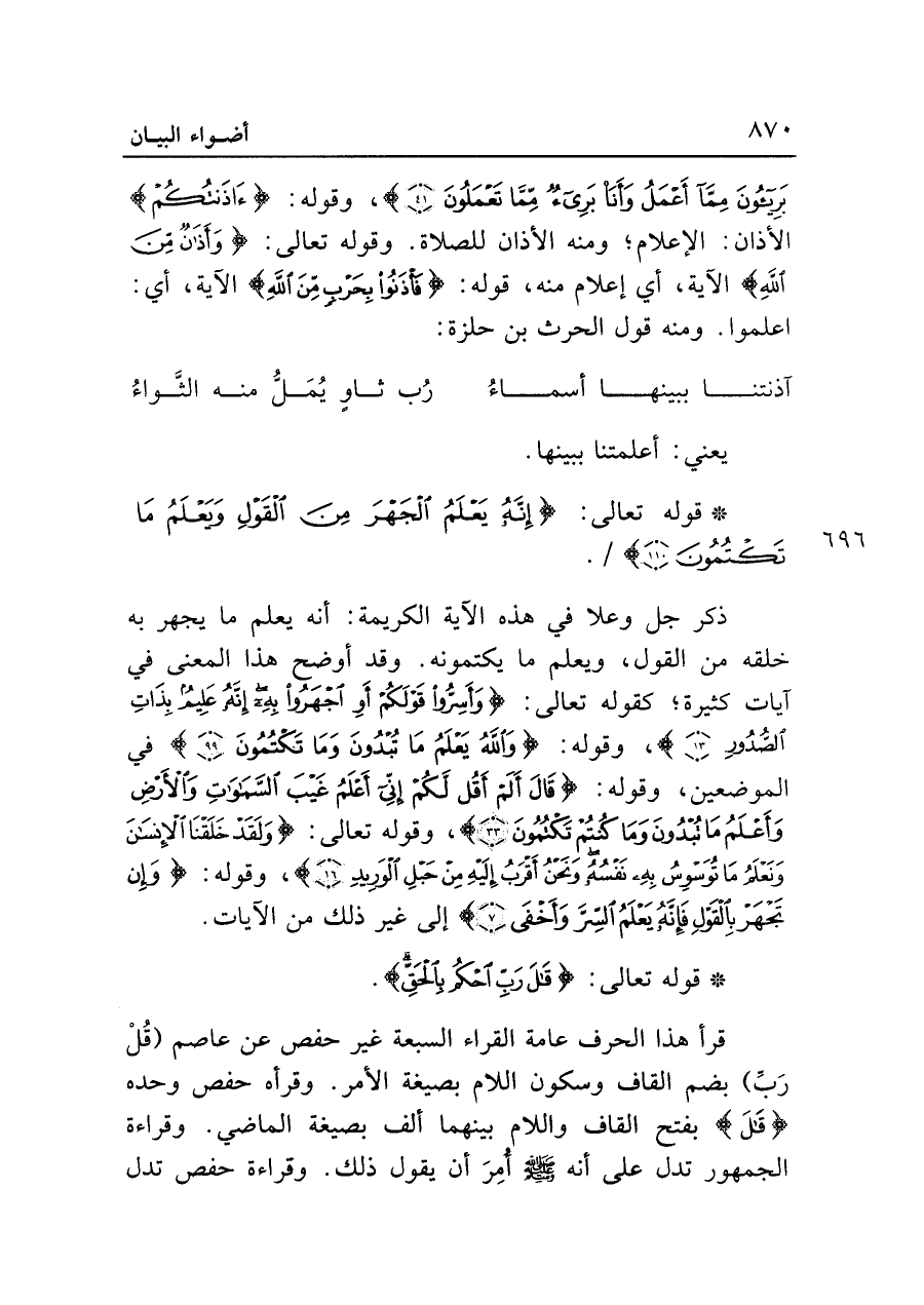 • قوله تعالى: {إِنَّهُ يَعْلَمُ الْجَهْرَ مِنَ الْقَوْلِ وَيَعْلَمُ مَا تَكْتُمُونَ (١١٠)}.