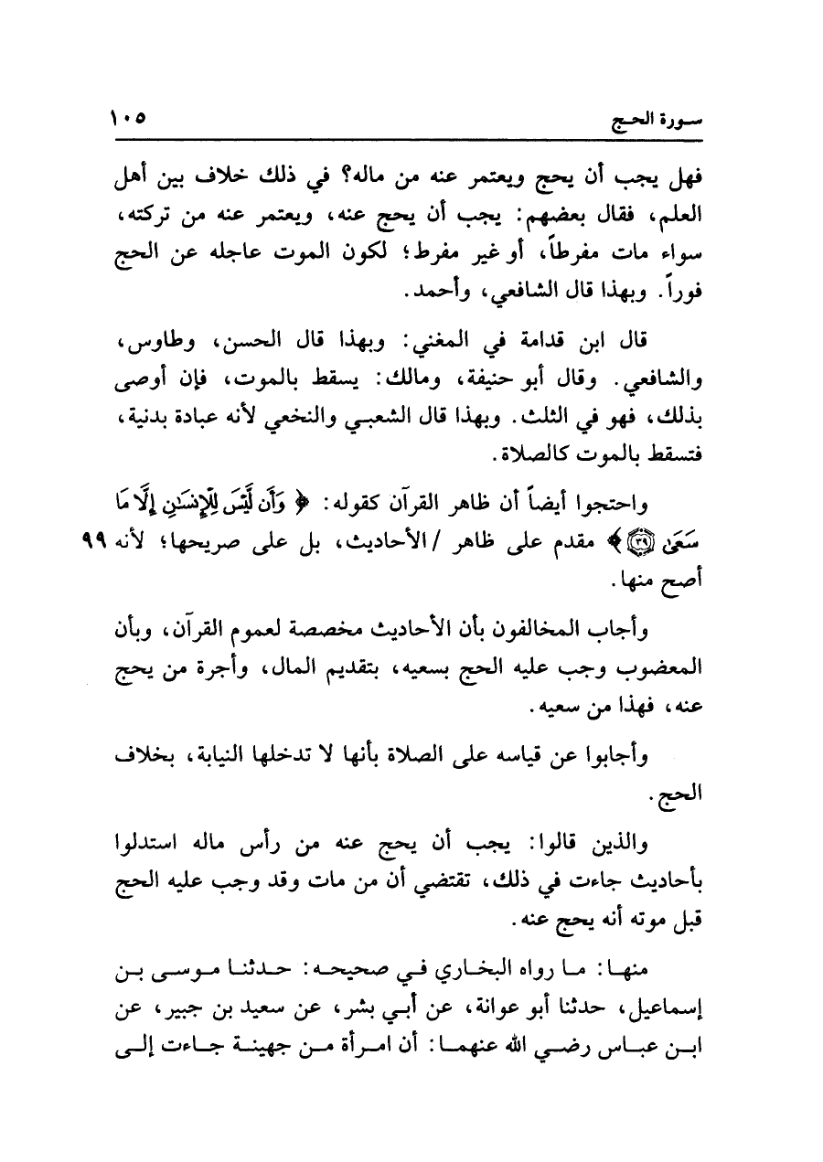 والذين قالوا: يجب أن يحج عنه من رأس ماله استدلوا بأحاديث جاءت في ذلك، تقتضي أن من مات وقد وجب عليه الحج قبل موته أنه يحج عنه.