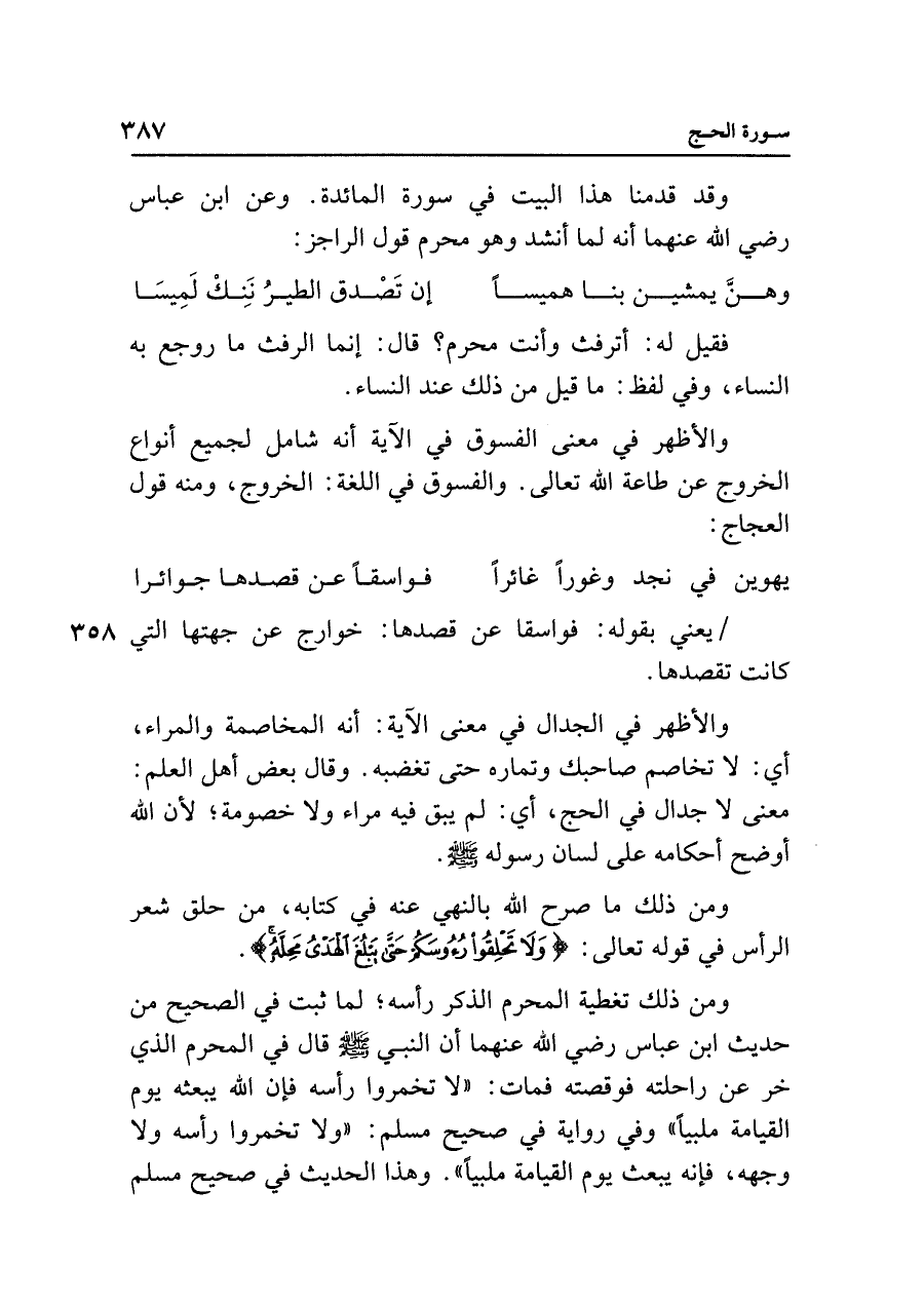 وقد قدمنا هذا البيت في سورة المائدة. وعن ابن عباس رضي الله عنهما أنه لما أنشد وهو محرم قول الراجز: