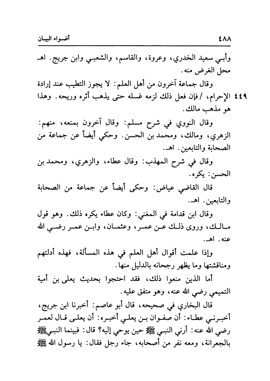 أما الذين منعوا ذلك، فقد احتجوا بحديث يعلى بن أمية التميمي رضي الله عنه، وهو متفق عليه.