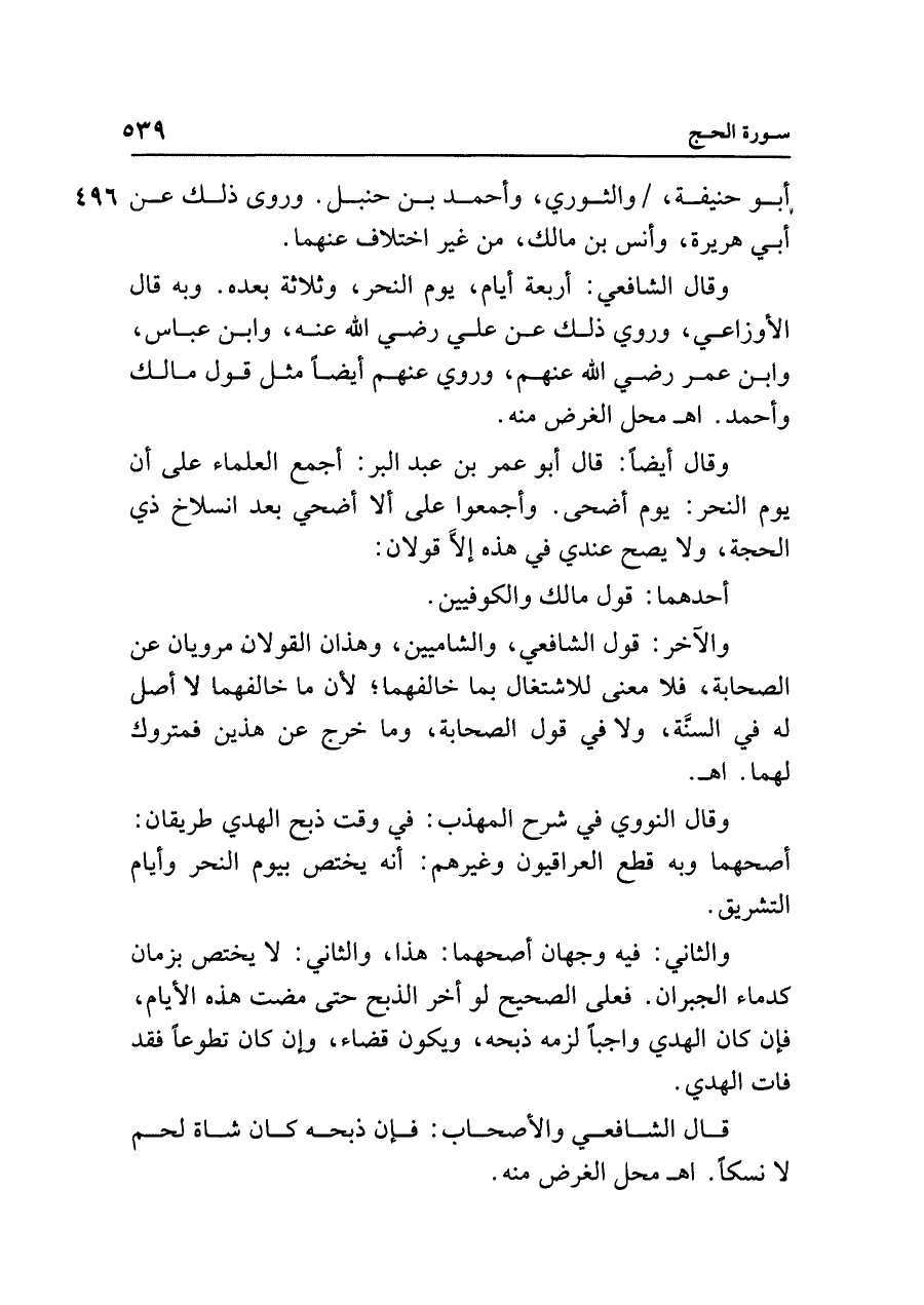 وقال أيضًا: قال أبو عمر بن عبد البر: أجمع العلماء على أن يوم النحر: يوم أضحى. وأجمعوا على ألا أضحي بعد انسلاخ ذي الحجة، ولا يصح عندي في هذه إلَّا قولان:
