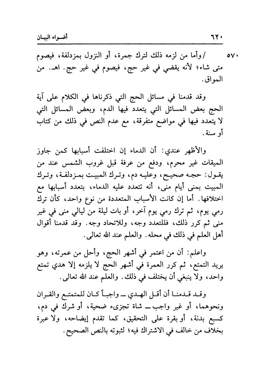 وقد قدمنا في مسائل الحج التي ذكرناها في الكلام على آية الحج بعض المسائل التي يتعدد فيها الدم، وبعض المسائل التي لا يتعدد فيها في مواضع متفرقة، مع عدم النص في ذلك من كتاب أو سنة.