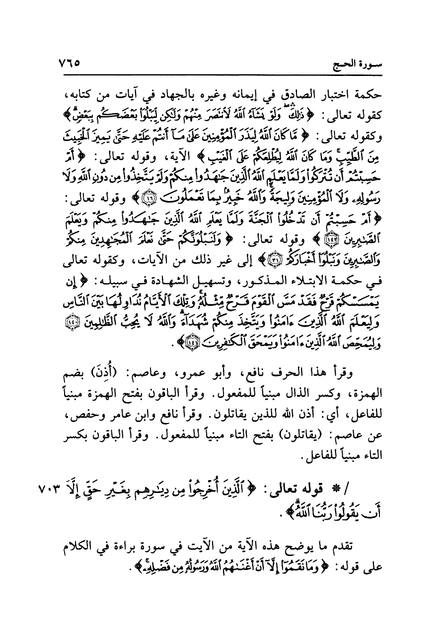 • قوله تعالى: {الَّذِينَ أُخْرِجُوا مِنْ دِيَارِهِمْ بِغَيْرِ حَقٍّ إِلَّا أَنْ يَقُولُوا رَبُّنَا اللَّهُ}.