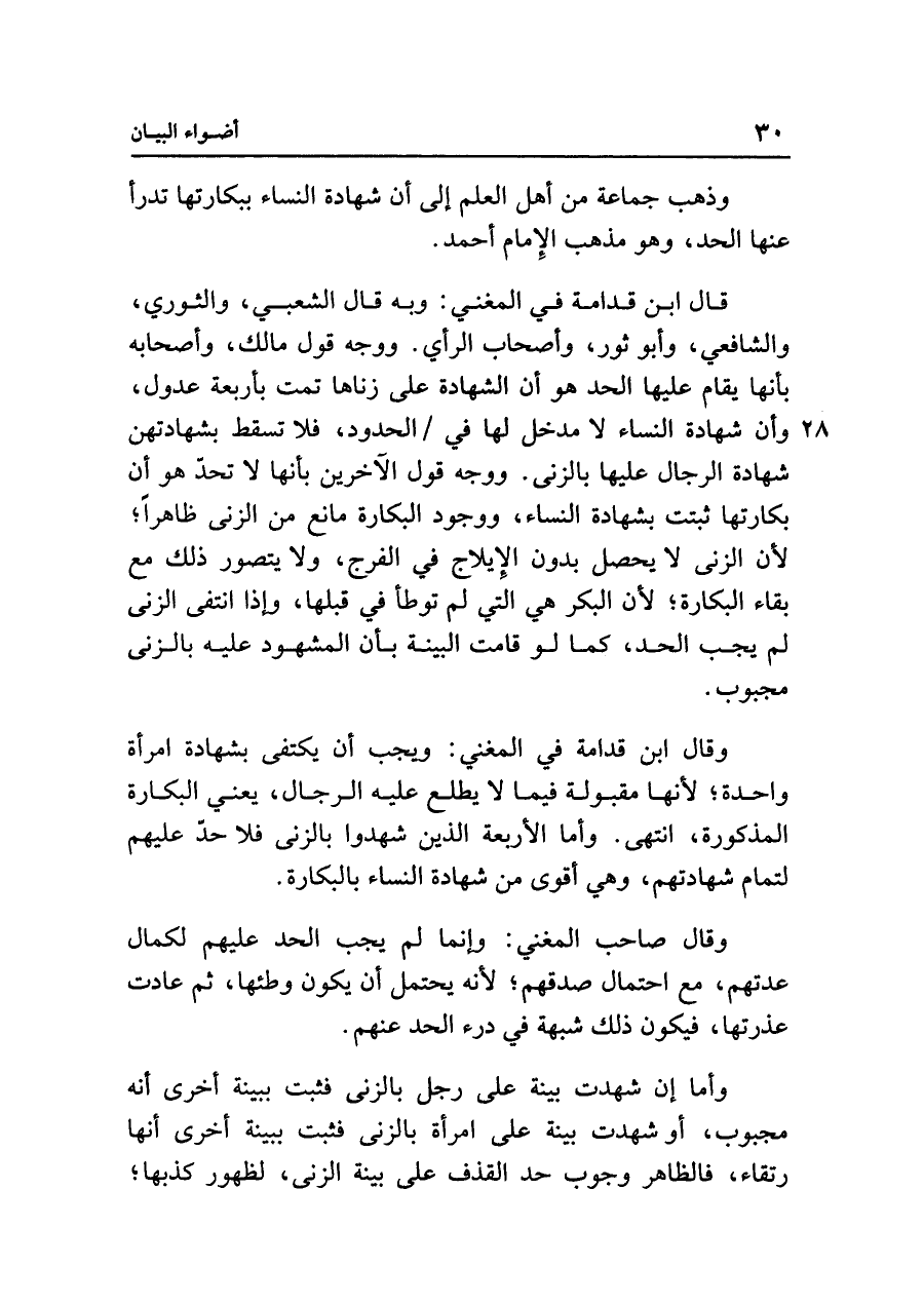 وقال ابن قدامة في المغني: ويجب أن يكتفى بشهادة امرأة واحدة؛ لأنها مقبولة فيما لا يطلع عليه الرجال، يعني البكارة المذكورة، انتهى. وأما الأربعة الذين شهدوا بالزنى فلا حدّ عليهم لتمام شهادتهم، وهي أقوى من شهادة النساء بالبكارة.