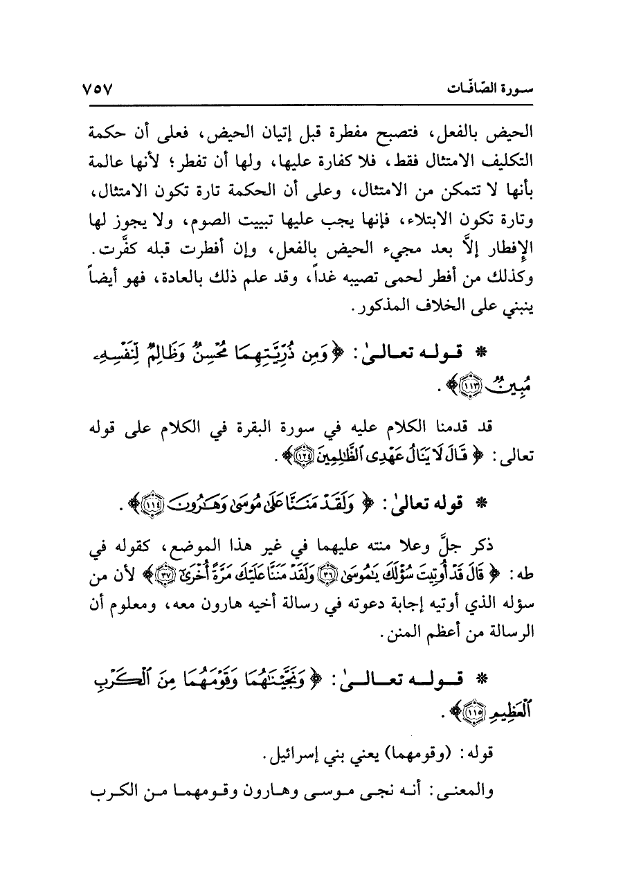 • قوله تعالى: {وَلَقَدْ مَنَنَّا عَلَى مُوسَى وَهَارُونَ (١١٤)}.