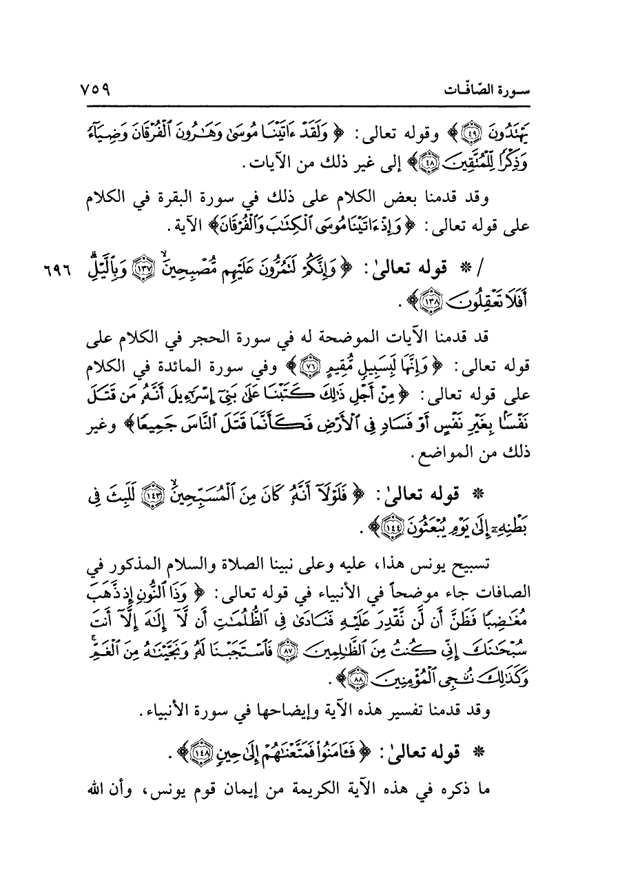 • قوله تعالى: {فَآمَنُوا فَمَتَّعْنَاهُمْ إِلَى حِينٍ (١٤٨)}.