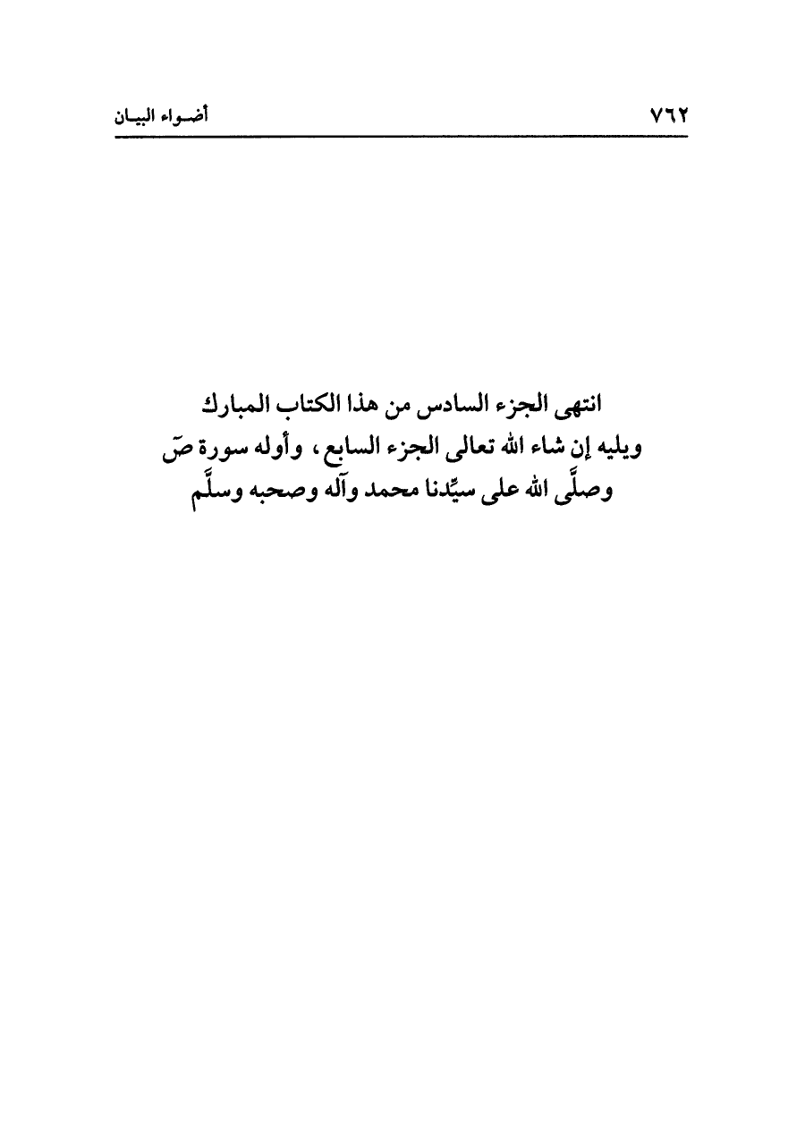 انتهى الجزء السادس من هذا الكتاب المبارك ويليه إن شاء الله تعالى الجزء السابع، وأوله سورة ص وصلَّى الله على سيِّدنا محمد وآله وصحبه وسلَّم