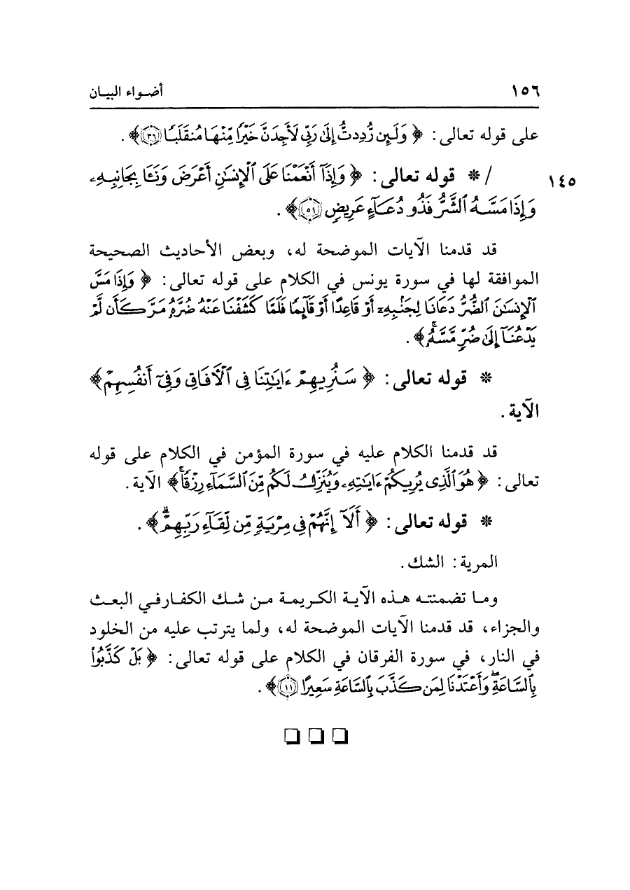 • قوله تعالى: {أَلَا إِنَّهُمْ فِي مِرْيَةٍ مِنْ لِقَاءِ رَبِّهِمْ}.
