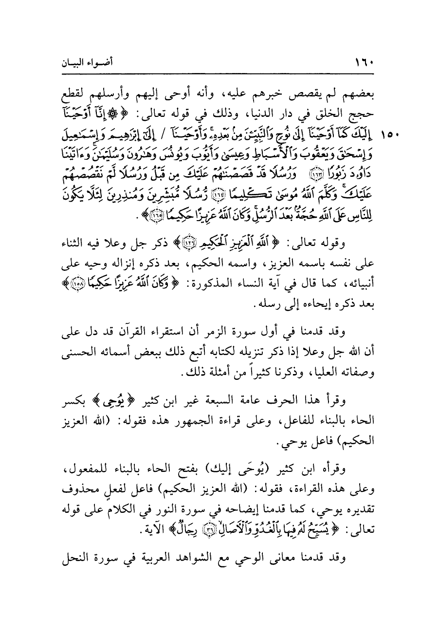 وقوله تعالى: {اللَّهِ الْعَزِيزِ الْحَكِيمِ} ذكر جل وعلا فيه الثناء على نفسه باسمه العزيز، واسمه الحكيم، بعد ذكره إنزاله وحيه على أنبيائه، كما قال في آية النساء المذكورة: {وَكَانَ اللَّهُ عَزِيزًا حَكِيمًا (١٥٨)} بعد ذكره إيحاءه إلى رسله.