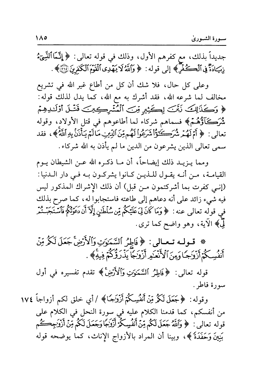 • قوله تعالى: {فَاطِرُ السَّمَاوَاتِ وَالْأَرْضِ جَعَلَ لَكُمْ مِنْ أَنْفُسِكُمْ أَزْوَاجًا وَمِنَ الْأَنْعَامِ أَزْوَاجًا يَذْرَؤُكُمْ فِيهِ}.
