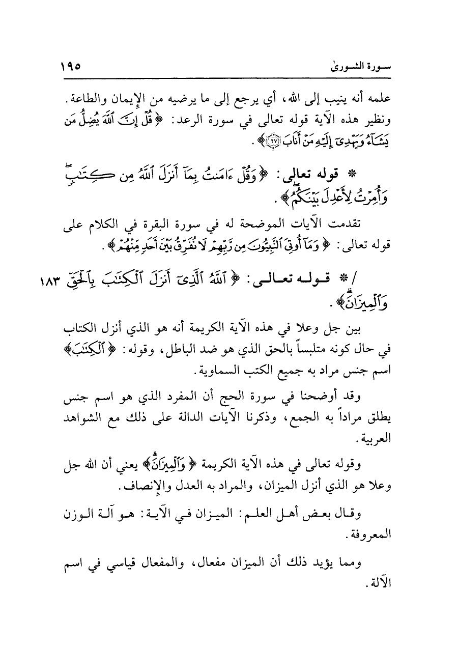 • قوله تعالى: {اللَّهُ الَّذِي أَنْزَلَ الْكِتَابَ بِالْحَقِّ وَالْمِيزَانَ}.