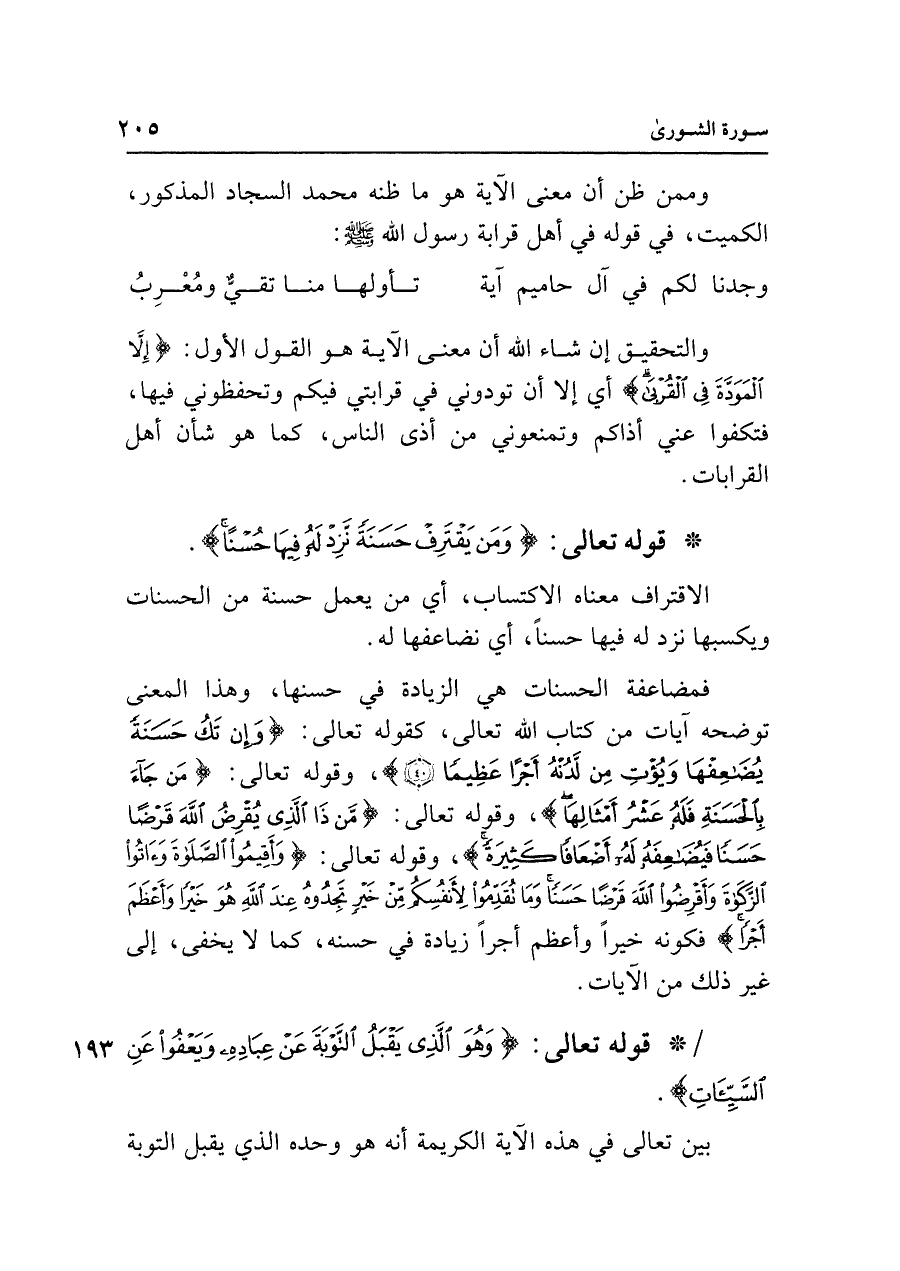 وممن ظن أن معنى الآية هو ما ظنه محمد السجاد المذكور، الكميت، في قوله في أهل قرابة رسول الله - صلى الله عليه وسلم -: