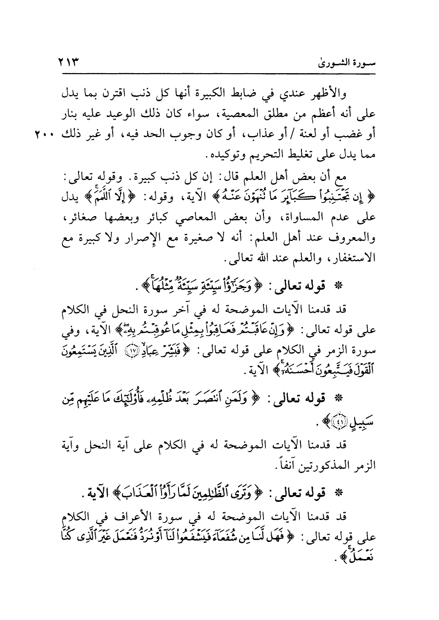 • قوله تعالى: {وَجَزَاءُ سَيِّئَةٍ سَيِّئَةٌ مِثْلُهَا}.