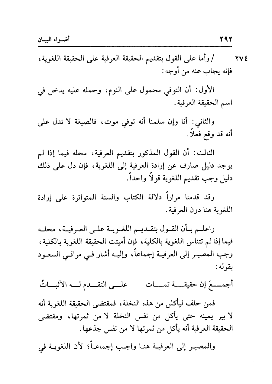 وقد قدمنا مرارًا دلالة الكتاب والسنة المتواترة على إرادة اللغوية هنا دون العرفية.
