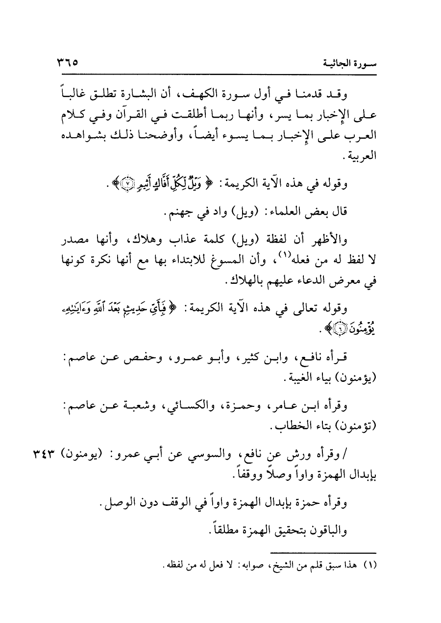 وقوله في هذه الآية الكريمة: {وَيلٌ لِكُلِّ أَفَّاكٍ أَثِيمٍ (٧)}.