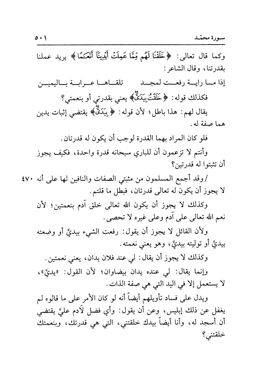 ولأن القائل لا يجوز أن يقول: رفعت الشيء بيديَّ أو وضعته بيديَّ أو توليته بيديَّ، وهو يعني نعمته.