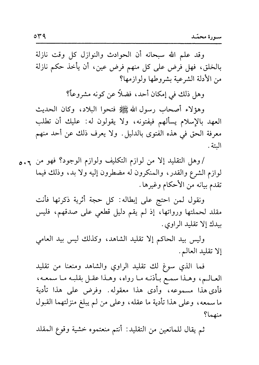 ثم يقال للمانعين من التقليد: أنتم منعتموه خشية وقوع المقلد