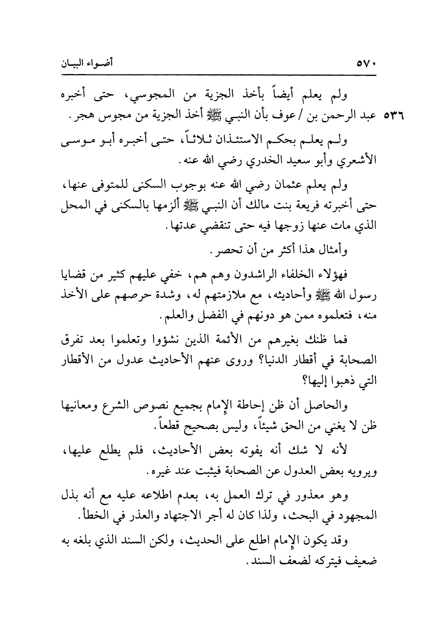 ولم يعلم أيضًا بأخذ الجزية من المجوسي، حتى أخبره عبد الرحمن بن عوف بأن النبي - صلى الله عليه وسلم - أخذ الجزية من مجوس هجر.