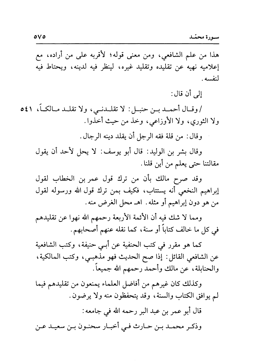 قال أبو عمر بن عبد البر رحمه الله في جامعه: