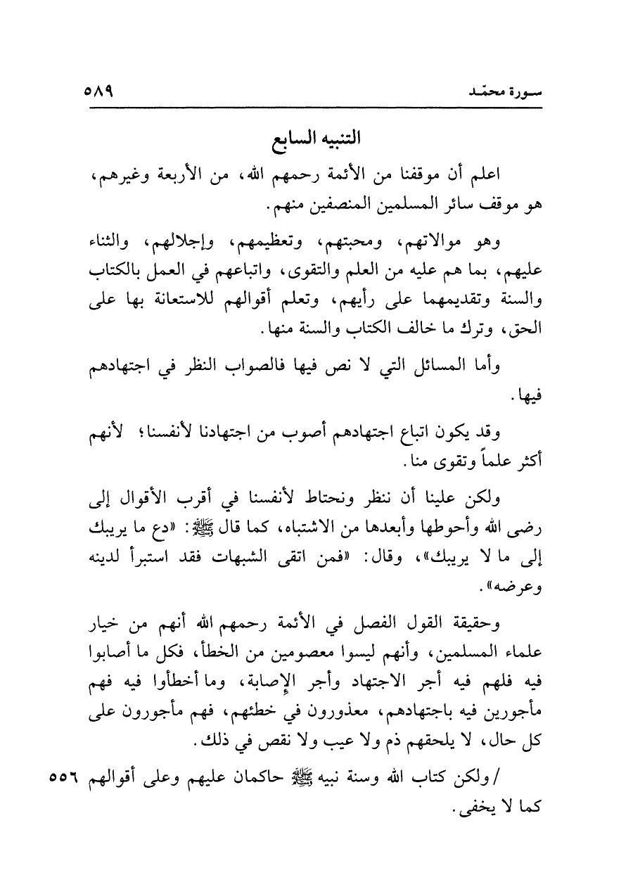وحقيقة القول الفصل في الأئمة رحمهم الله أنهم من خيار علماء المسلمين، وأنهم ليسوا معصومين من الخطأ، فكل ما أصابوا فيه فلهم فيه أجر الاجتهاد وأجر الإِصابة، وما أخطأوا فيه فهم مأجورين فيه باجتهادهم، معذورون في خطئهم، فهم مأجورون على كل حال، لا يلحقهم ذم ولا عيب ولا نقص في ذلك.