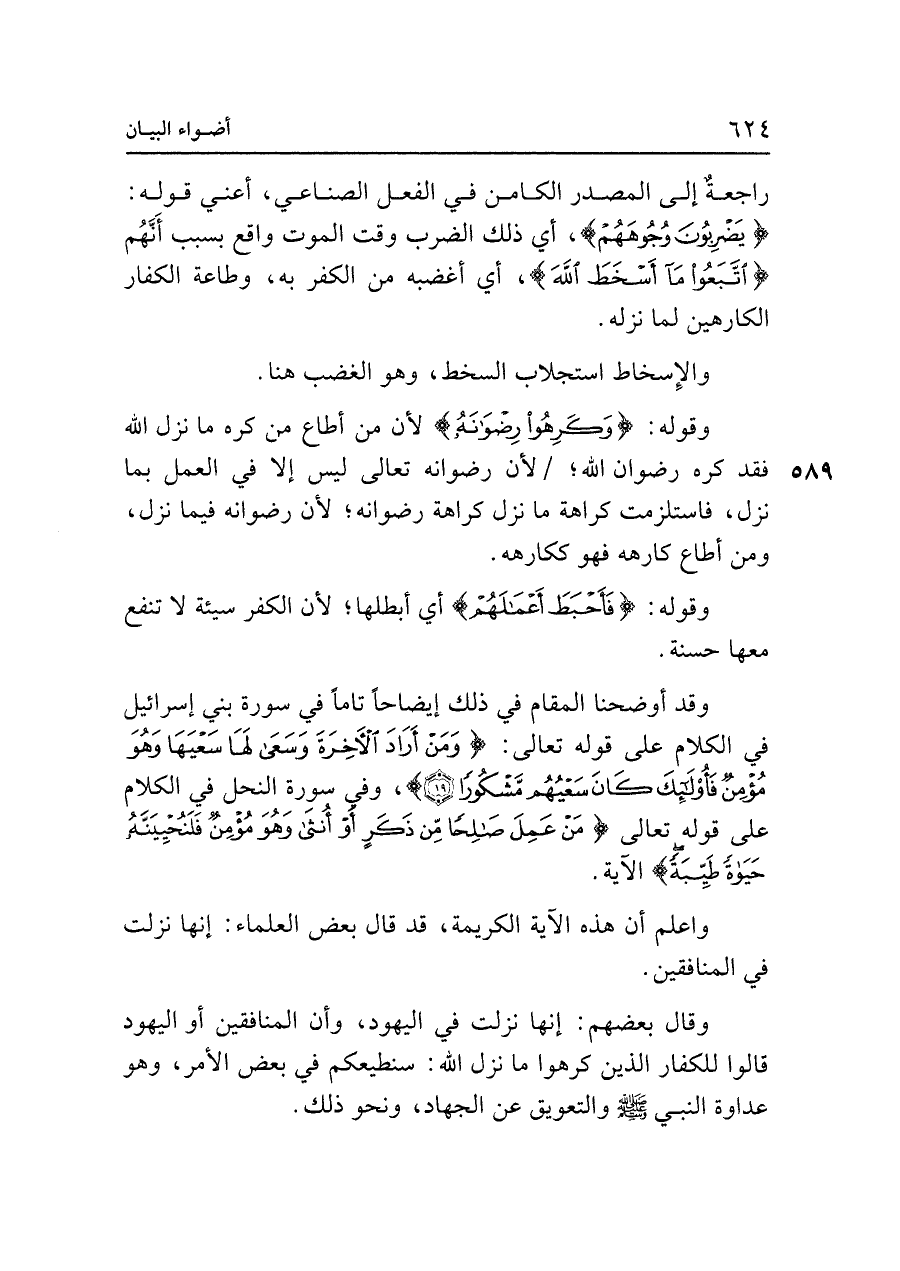 وقد أوضحنا المقام في ذلك إيضاحًا تامًّا في سورة بني إسرائيل في الكلام على قوله تعالى: {وَمَنْ أَرَادَ الْآخِرَةَ وَسَعَى لَهَا سَعْيَهَا وَهُوَ مُؤْمِنٌ فَأُولَئِكَ كَانَ سَعْيُهُمْ مَشْكُورًا (١٩)}، وفي سورة النحل في الكلام على قوله تعالى {مَنْ عَمِلَ صَالِحًا مِنْ ذَكَرٍ أَوْ أُنْثَى وَهُوَ مُؤْمِنٌ فَلَنُحْيِيَنَّهُ حَيَاةً طَيِّبَةً} الآية.