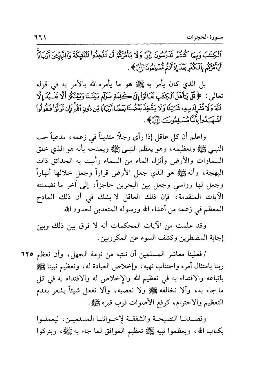 وقصدنا النصيحة والشفقة لإِخواننا المسلمين، ليعملوا بكتاب الله، ويعظموا نبيه صلى الله عليه وسلم تعظيم الموافق لما جاء به - صلى الله عليه وسلم - ، ويتركوا