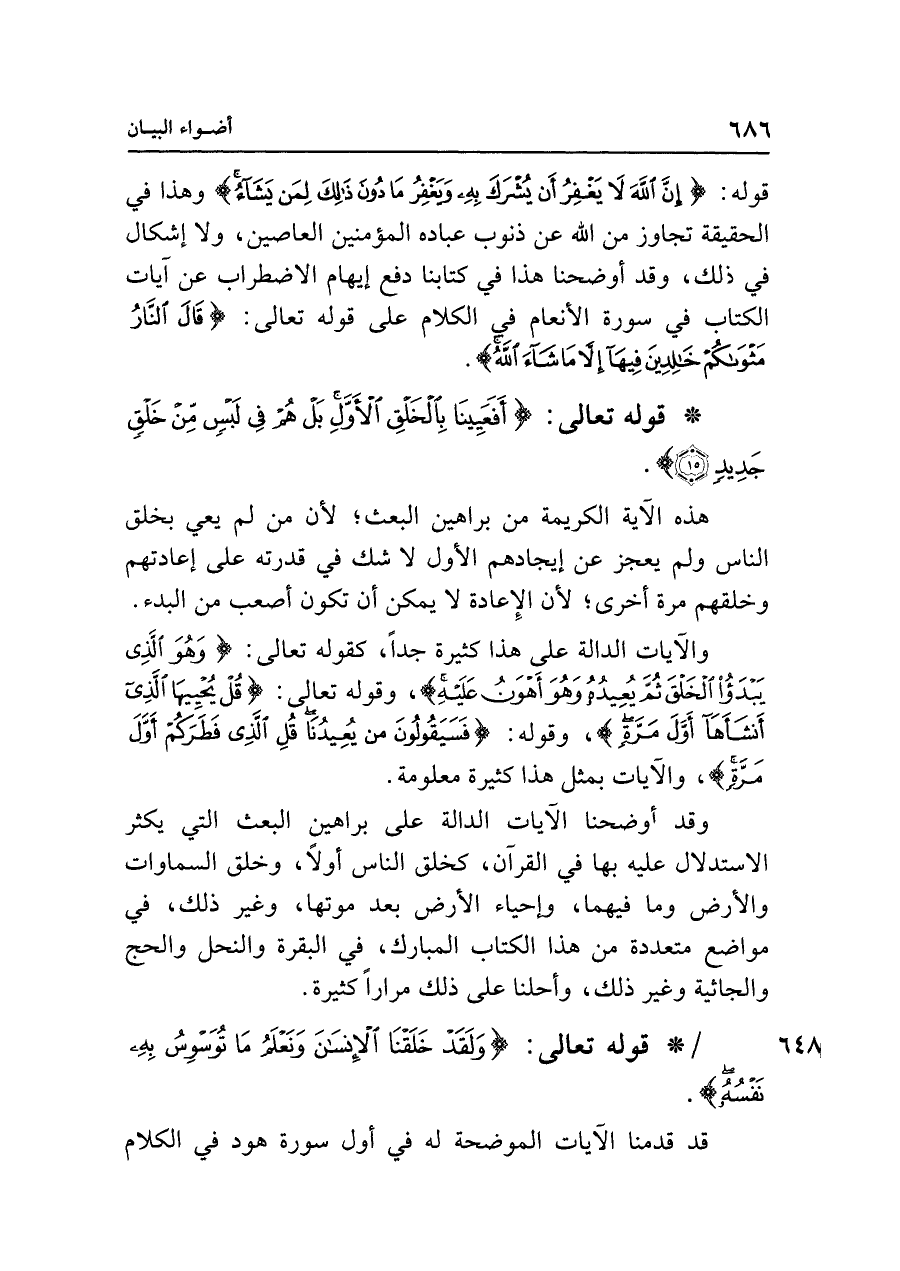 وقد أوضحنا الآيات الدالة على براهين البعث التي يكثر الاستدلال عليه بها في القرآن، كخلق الناس أولًا، وخلق السماوات والأرض وما فيهما، وإحياء الأرض بعد موتها، وغير ذلك، في مواضع متعددة من هذا الكتاب المبارك، في البقرة والنحل والحج والجاثية وغير ذلك، وأحلنا على ذلك مرارًا كثيرة.