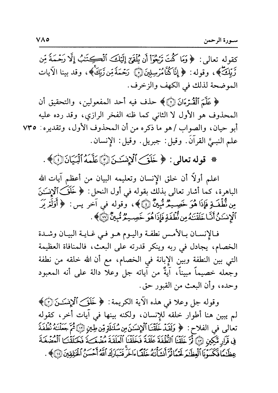 • قوله تعالى: {خَلَقَ الْإِنْسَانَ (٣) عَلَّمَهُ الْبَيَانَ (٤)}.