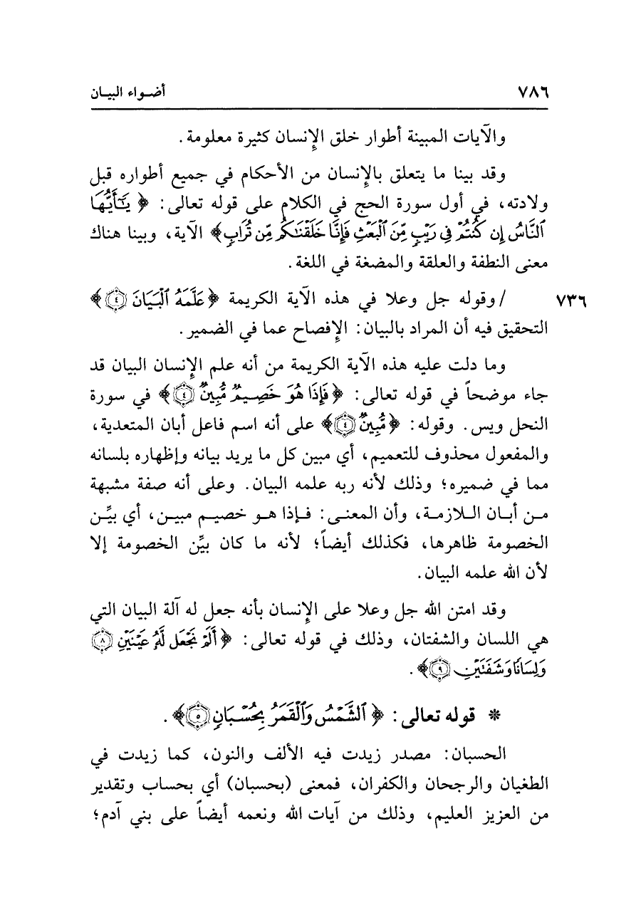 • قوله تعالى: {الشَّمْسُ وَالْقَمَرُ بِحُسْبَانٍ (٥)}.