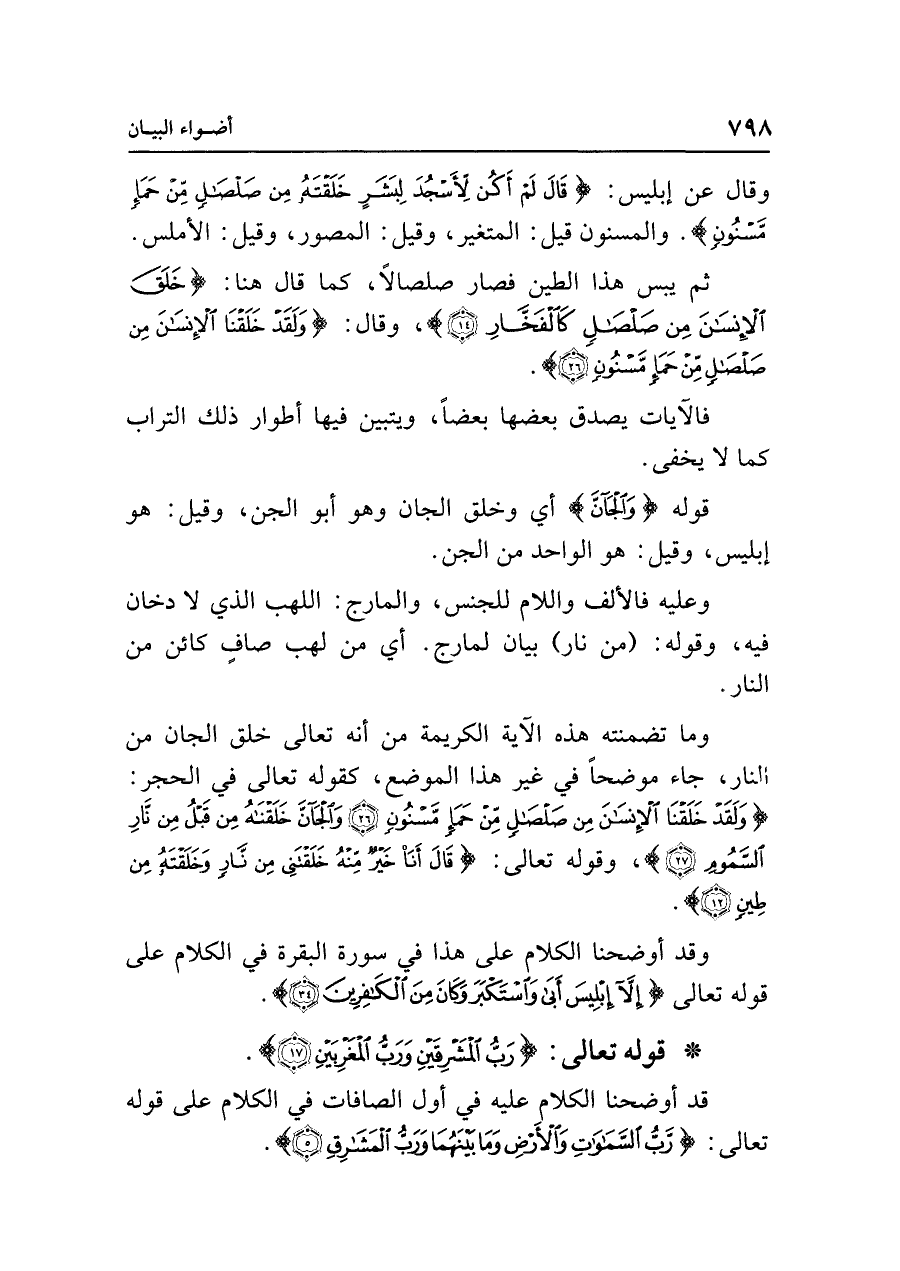 كتاب أضواء البيان في إيضاح القرآن بالقرآن - ط عطاءات العلم (اسم الجزء: 7)