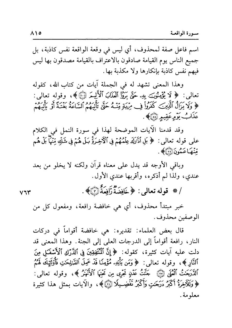 • قوله تعالى: {خَافِضَةٌ رَافِعَةٌ (٣)}.