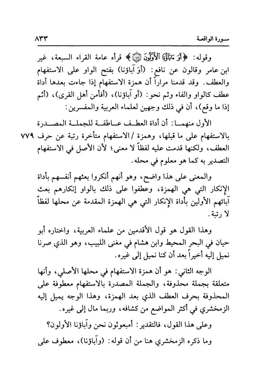 وهذا القول هو قول الأقدمين من علماء العربية، واختاره أبو حيان في البحر المحيط وابن هشام في مغنى اللبيب، وهو الذي صرنا نميل إليه أخيرًا بعد أن كنا نميل إلى غيره.