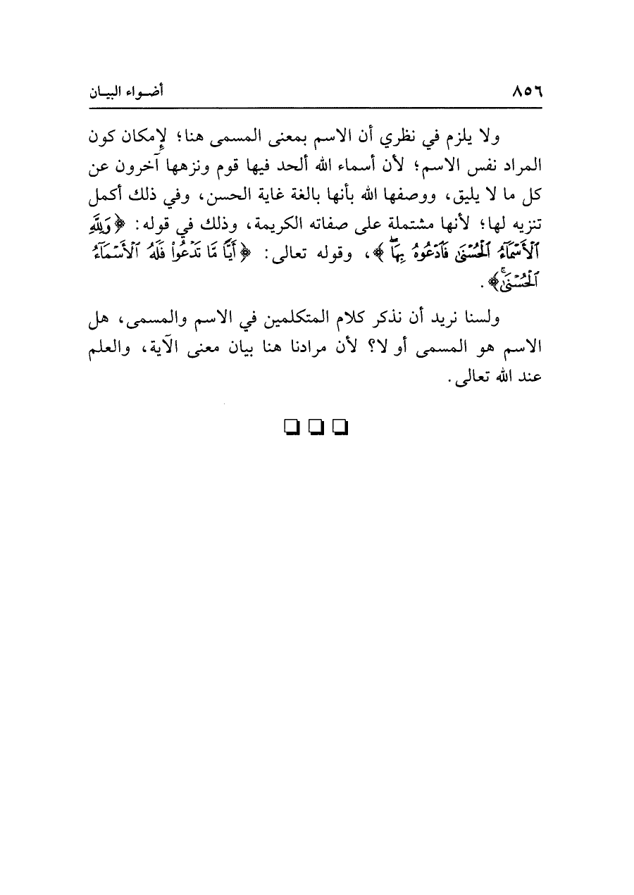 ولسنا نريد أن نذكر كلام المتكلمين في الاسم والمسمى، هل الاسم هو المسمى أو لا؟ لأن مرادنا هنا بيان معنى الآية، والعلم عند الله تعالى.