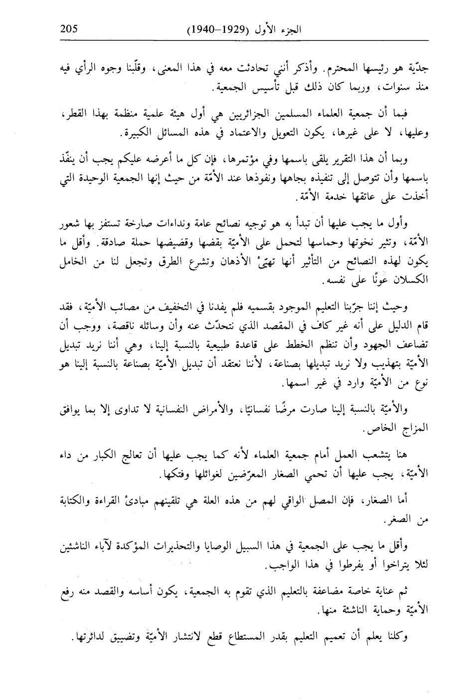 فبما أن جمعية العلماء المسلمين الجزائريين هى أول هيئة علمية منظمة بهذا القطر، وعليها، لا على غيرها، يكون التعويل والاعتماد في هذه المسائل الكبيرة.