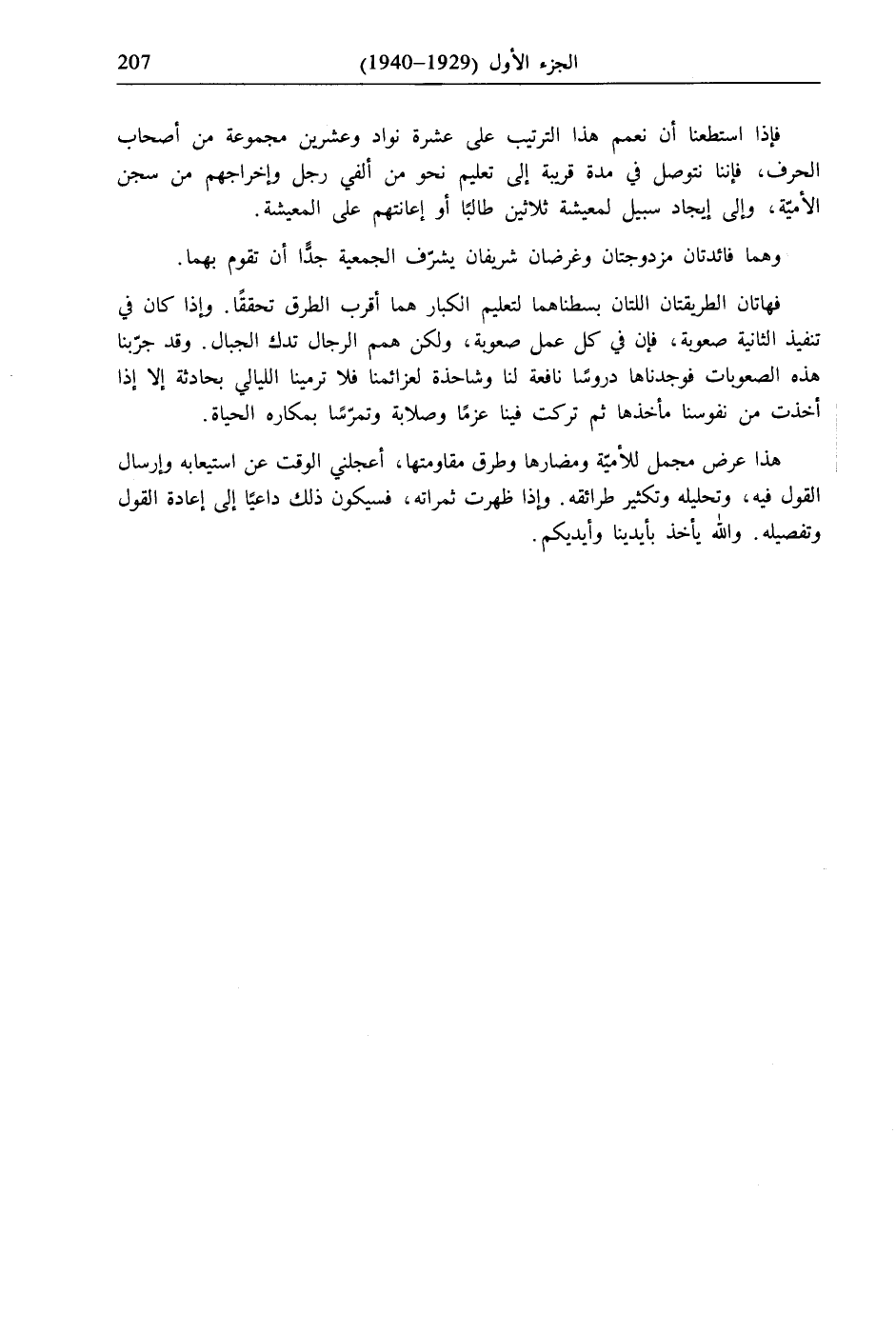 هذا عرض مجمل للأميّة ومضارها وطرق مقاومتها، أعجلني الوقت عن استيعابه وإرسال القول فيه، وتحليله وتكثير طرائقه. وإذا ظهرت ثمراته، فسيكون ذلك داعيًا إلى إعادة القول وتفصيله. والله يأخذ بأيدينا وأيديكم.