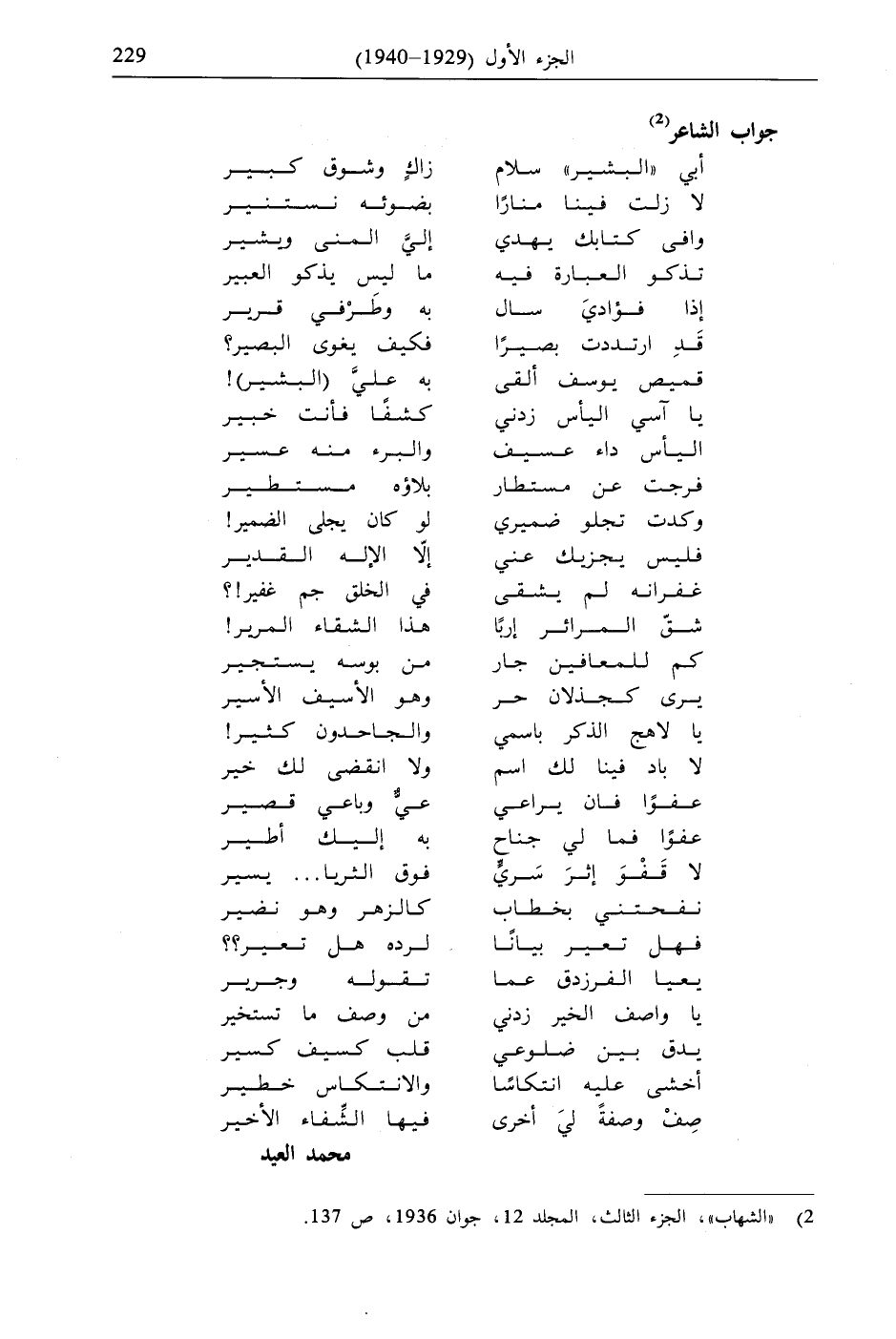 2) "الشهاب"، الجزء الثالث، المجلد 12، جوان 1936، [ص:137].
