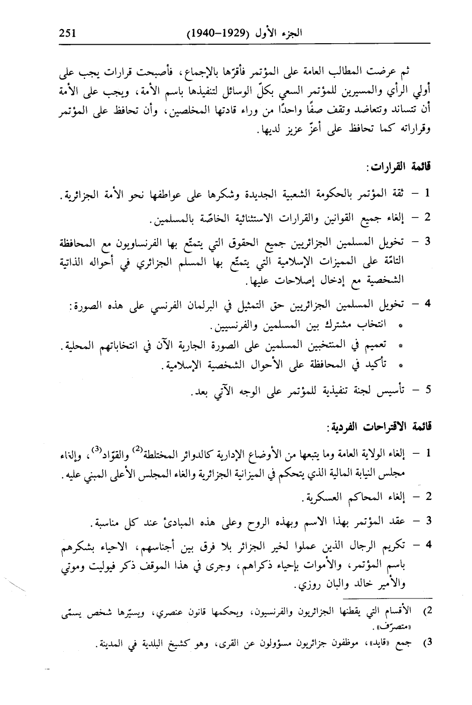 4 - تخويل المسلمين الجزائريين حق التمثيل في البرلمان الفرنسي على هذه الصورة:* انتخاب مشترك بين المسلمين والفرنسيين.