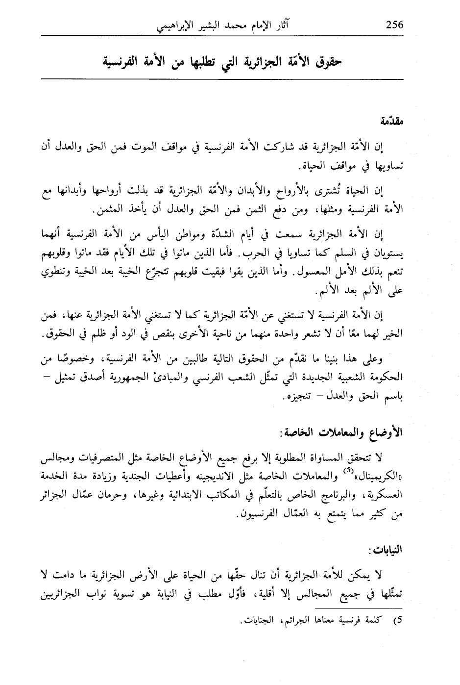 حقوق الأمّة الجزائرية التي تطلبها من الأمة الفرنسية