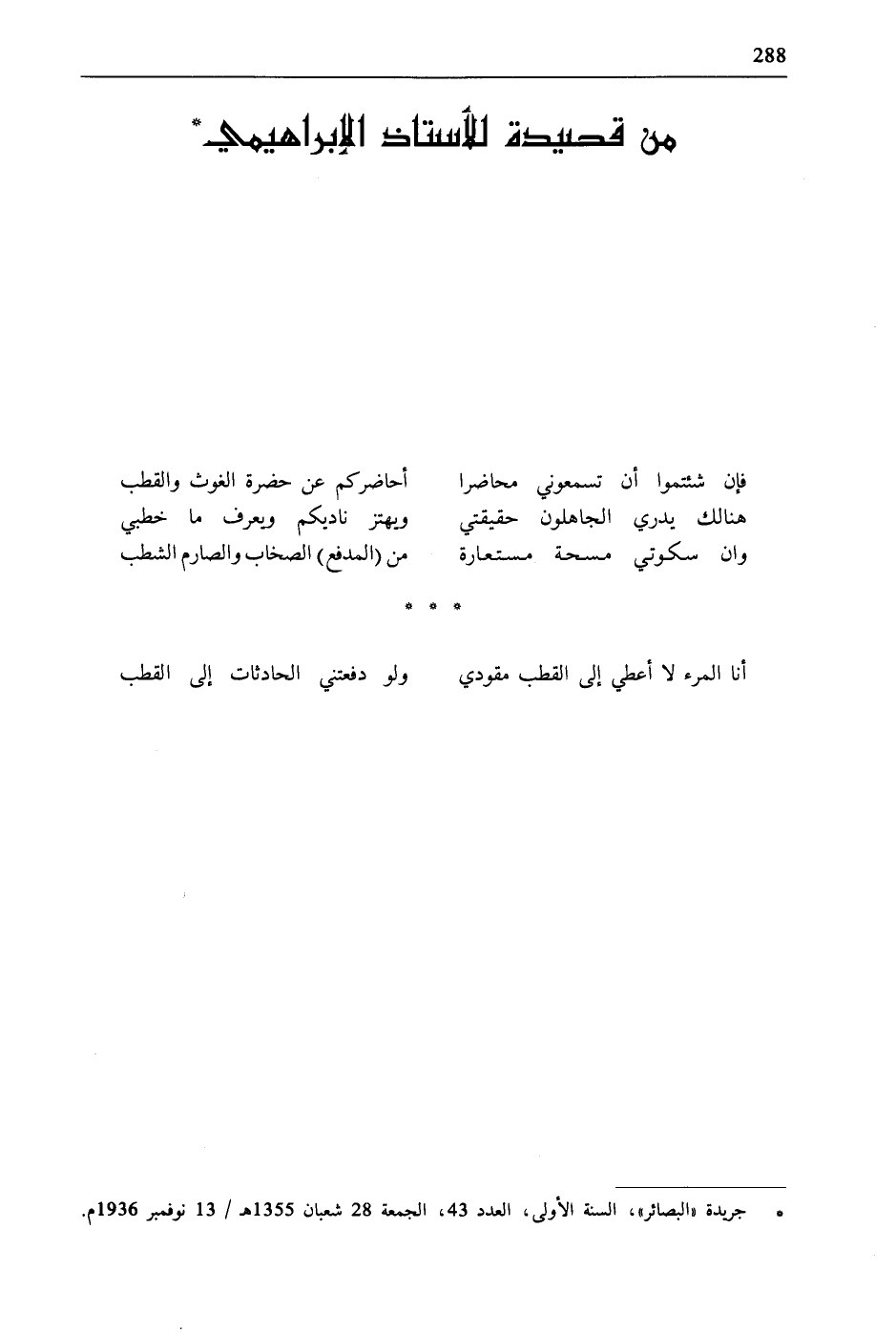 فإن شئتموا أن تسمعوني محاضرا … أحاضركم عن حضرة الغوث والقطب