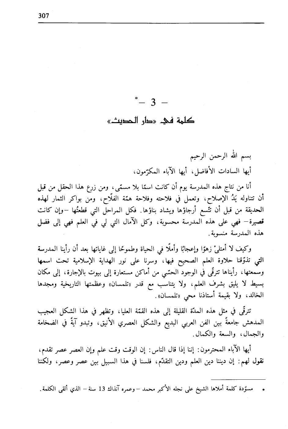 كلمة في «دار الحديث»