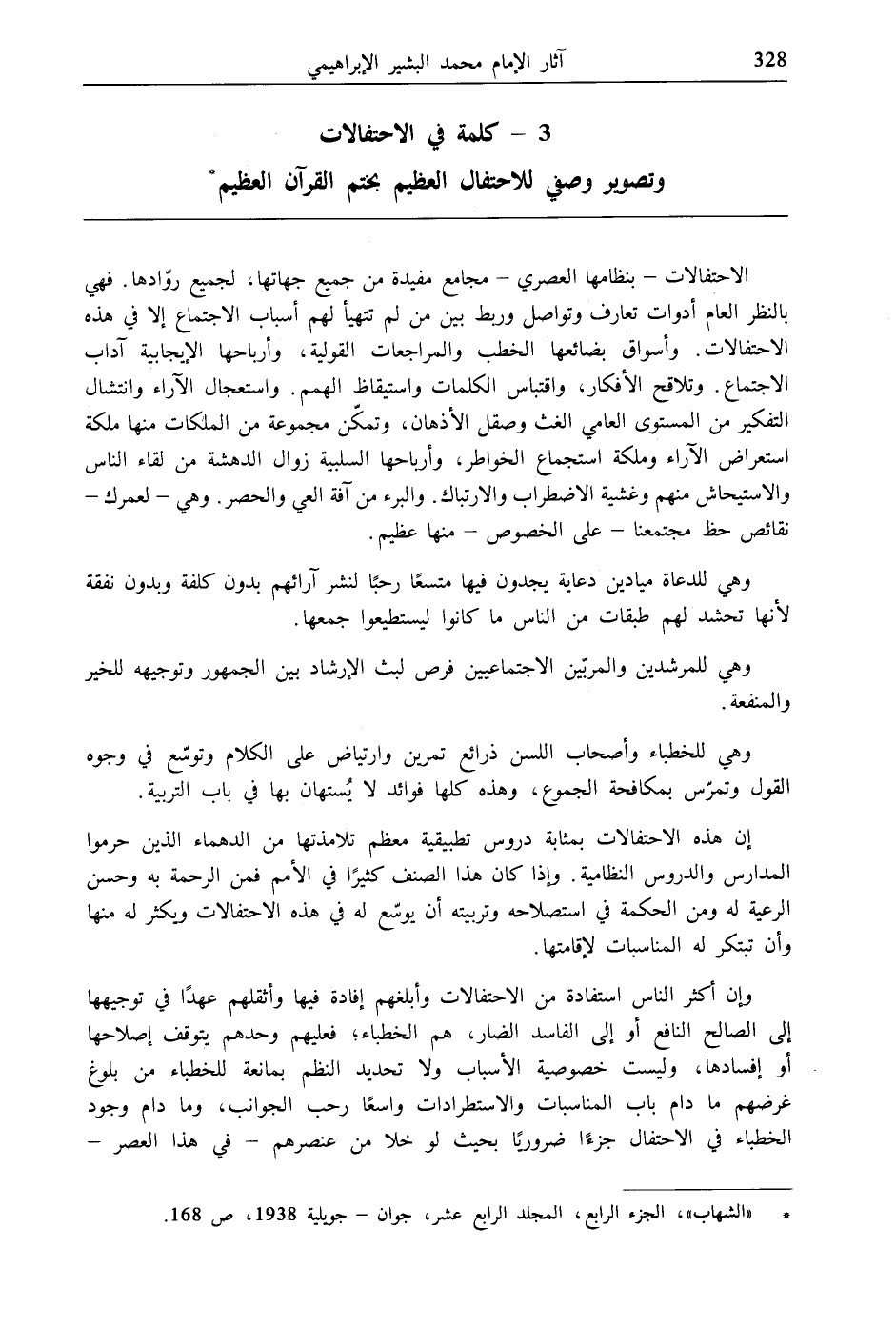* "الشهاب"، الجزء الرابع، المجلد الرابع عشر، جوان- جويلية 1938، [ص:168].