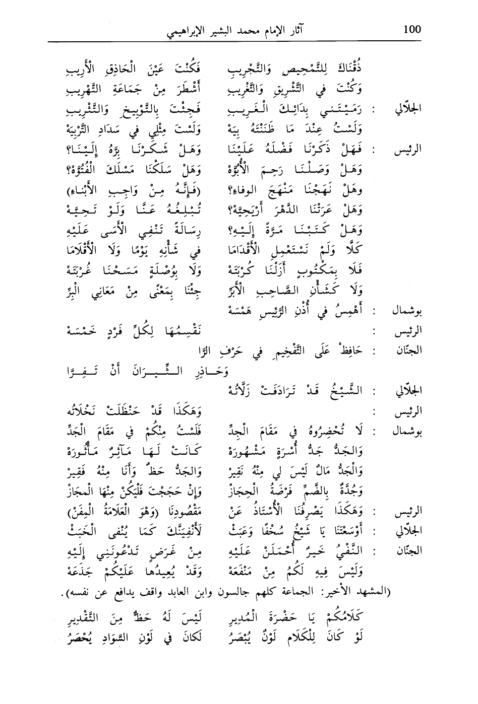 بُوشْمَال: لَا تُحْضِرُوهُ فِي مَقَامَ الْجِدِّ … فَلَسْتُ مِنْكُمْ فِي مَقَامَ الْجَدِّ