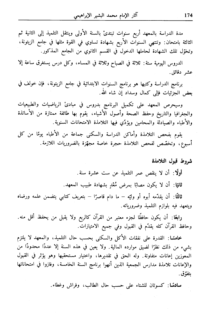 برنامج الدراسة وكتبها هو برنامج السنوات الابتدائية في جامع الزيتونة، فإن خولف في بعض الجزئيات فإلى كمال وسداد إن شاء الله.