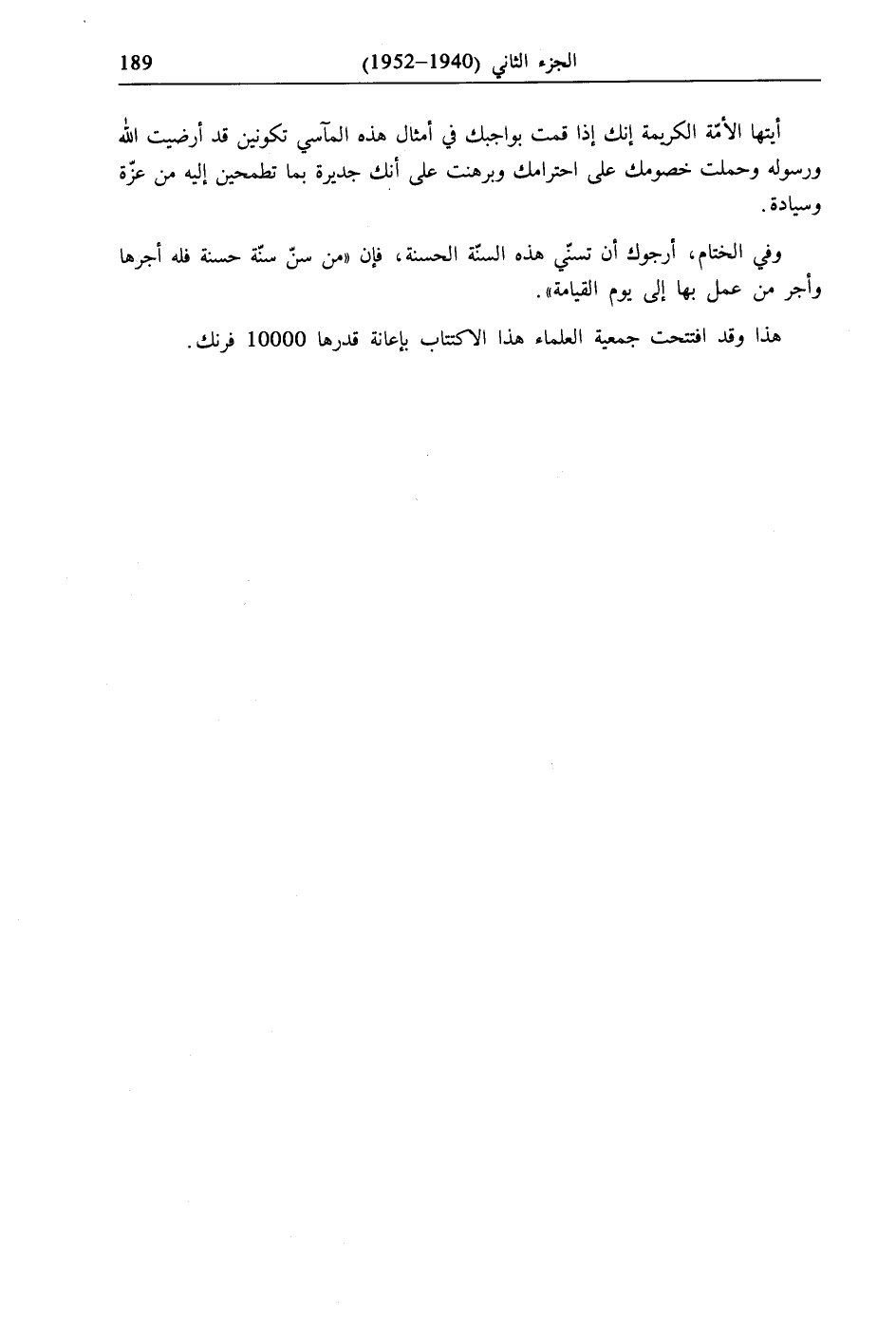 هذا وقد افتتحت جمعية العلماء هذا الاكتتاب بإعانة قدرها 10000 فرنك.