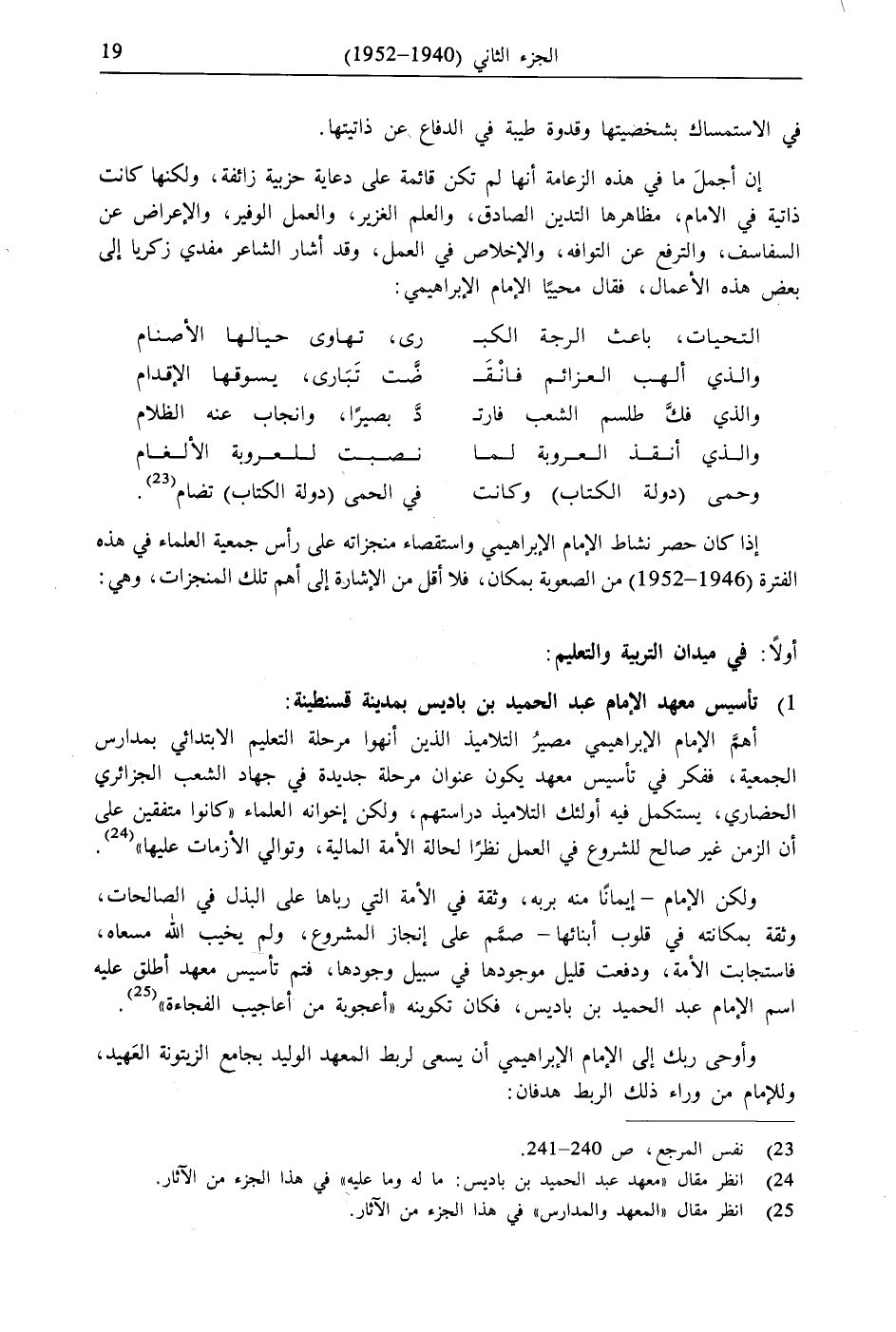 24) انظر مقال "معهد عبد الحميد بن باديس: ما له وما عليه" في هذا الجزء من الآثار.