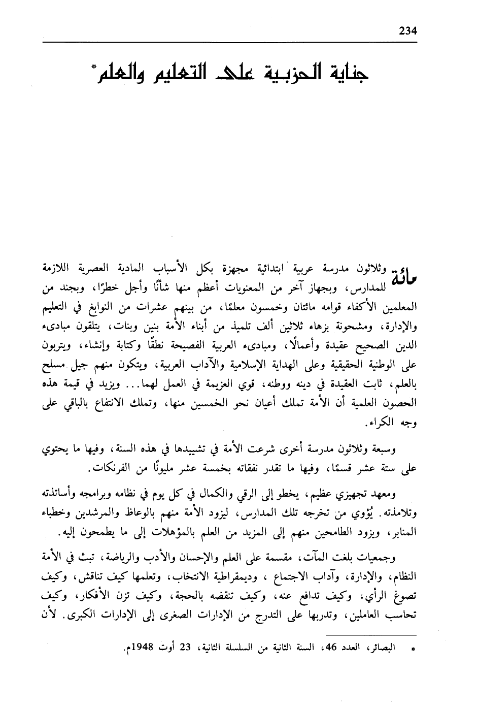 * "البصائر"، العدد 46، السنة الثانية من السلسلة الثانية، 23 أوت 1948م.