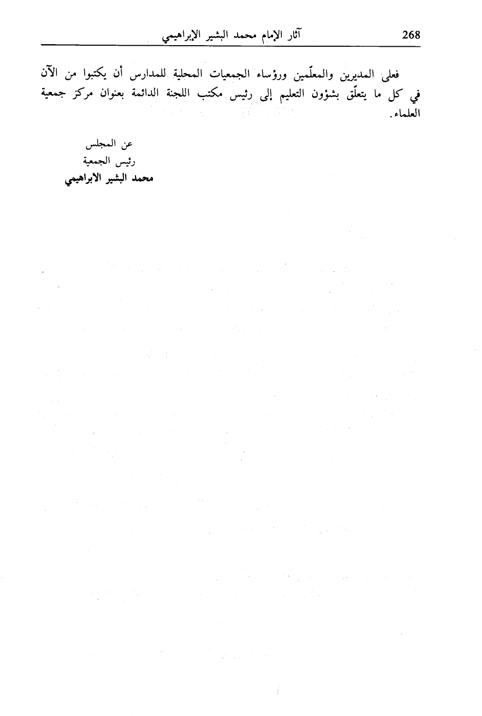 فعلى المديرين والمعلّمين ورؤساء الجمعيات المحلية للمدارس أن يكتبوا من الآن في كل ما يتعلّق بشؤون التعليم إلى رئيس مكتب اللجنة الدائمة بعنوان مركز جمعية العلماء.